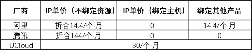 三家厂商的流量费用都是 0.8 元 / GB,没什么区别,而真正的区别是在 IP 使用费用上。