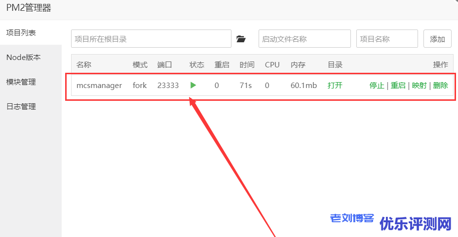 第五步:把MCSM项目于添加到PM2管理器(注意!不能直接在PM2管理器添加项目会出错)