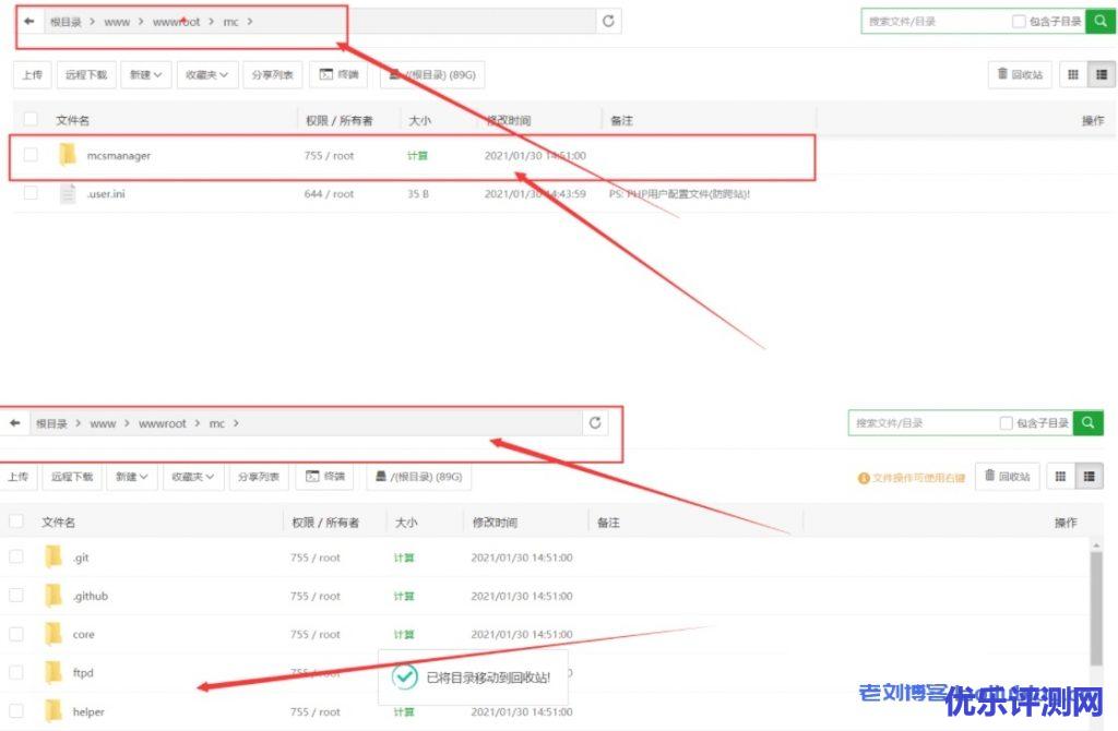 第三步:随后把mcsmanager文件夹内的所有内容移动到网站根目录