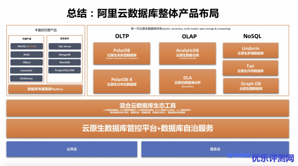 在产品布局层面,通过支撑阿里经济体多年实践而成的强大的云端管控及自治能力为基础,支持丰富而全面的数据库产品体系。形成了以开源托管类与自主开发类两大产品体系。在前者通过开源的强大生态带来更多获客的同时;构建自有核心竞争力,形成了较为完善的全产品系列的自研产品体系。可以说,阿里云通过多年的沉淀,已形成较为完善、成熟的产品体系,这也从去年进入Gartner的领导者象限这一标志性事件得以体现。