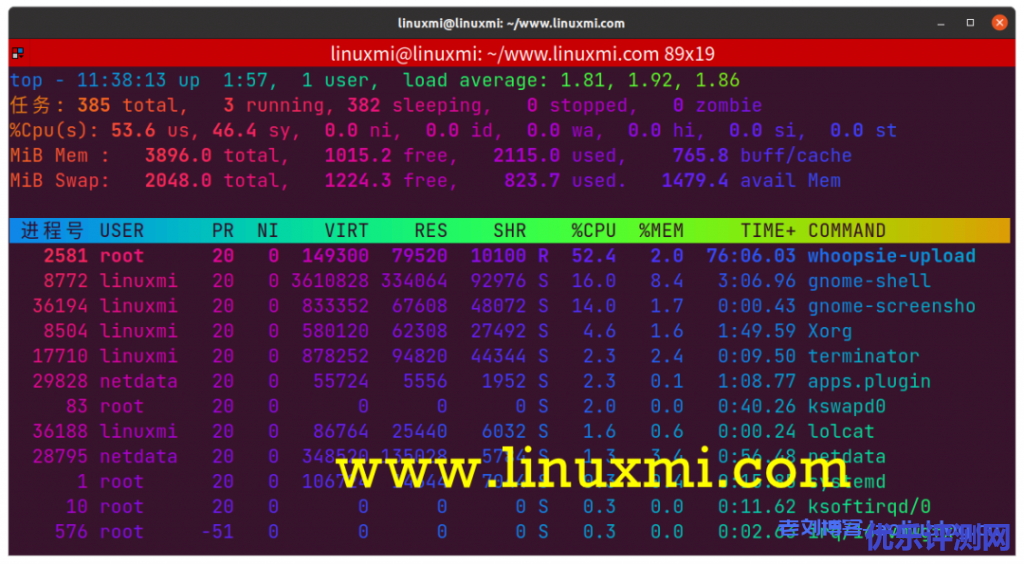 linuxmi@linuxmi:~/www.linuxmi.com$ top