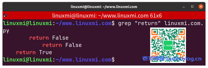 linuxmi@linuxmi:~/www.linuxmi.com$grep “return” linuxmi.com.py