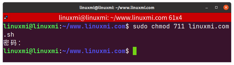 linuxmi@linuxmi:~/www.linuxmi.com$ sudo chmod 711 linuxmi.com.sh