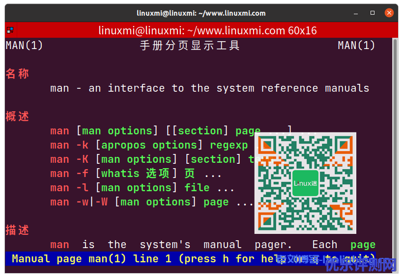 历史命令用于显示您之前输入的命令。linuxmi@linuxmi:~/www.linuxmi.com$ history