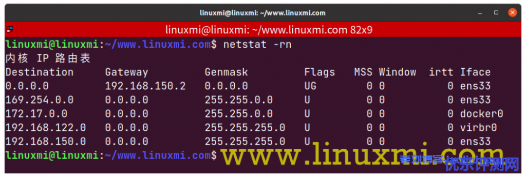 netstat命令可用于检查网络统计信息,接口统计信息,路由表信息等等。linuxmi@linuxmi:~/www.linuxmi.com$ netstat