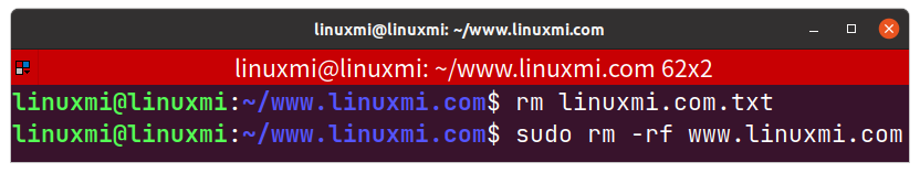 linuxmi@linuxmi:~/www.linuxmi.com$sudo rm -rf www.linuxmi.com#删除目录