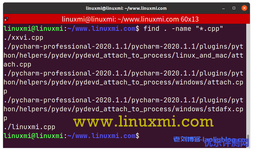 linuxmi@linuxmi:~/www.linuxmi.com$ find . -name “*.cpp”