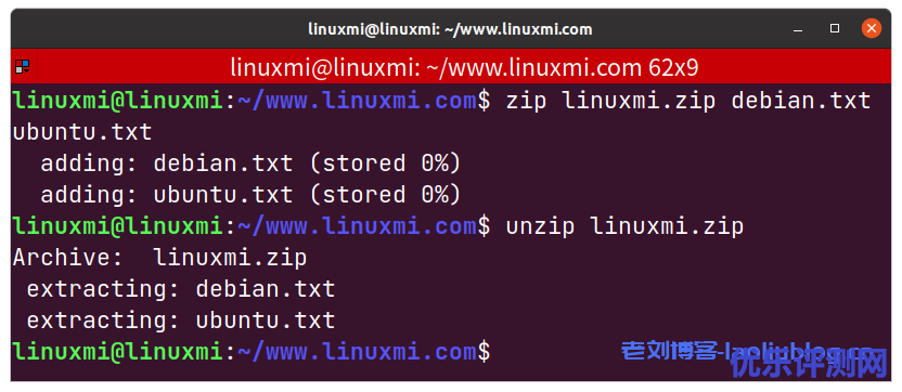 linuxmi@linuxmi:~/www.linuxmi.com$zip linuxmi.zip debian.txt ubuntu.txt