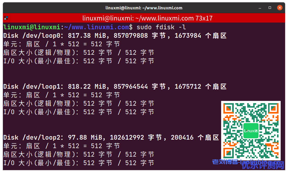 linuxmi@linuxmi:~/www.linuxmi.com$ sudo fdisk -l