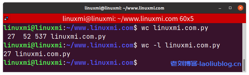 linuxmi@linuxmi:~/www.linuxmi.com$ wc linuxmi.com.py