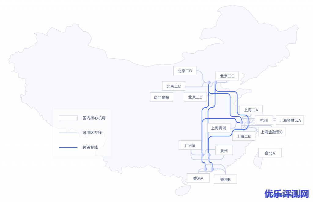 | 资源范围 | 拥有全球多地Tier 3级别机房,接入电信、联通、移动、铁通、鹏博士多线BGP网络,全球主要可用区之间网络互联互通 | 海外机房覆盖较少,机房接入线路为电信、联通、移动等BGP线路 | 机房机柜资源少扩容困难,机房接入线路较少,机房之间互通需要单独拉专线,实施周期长 |