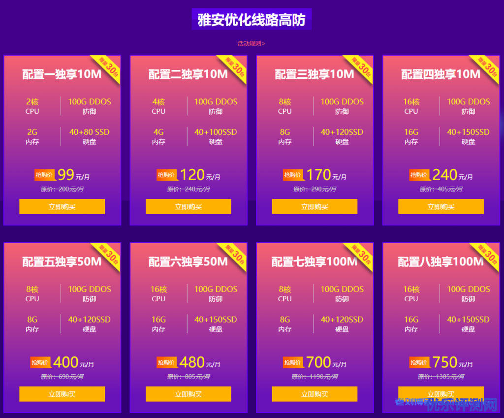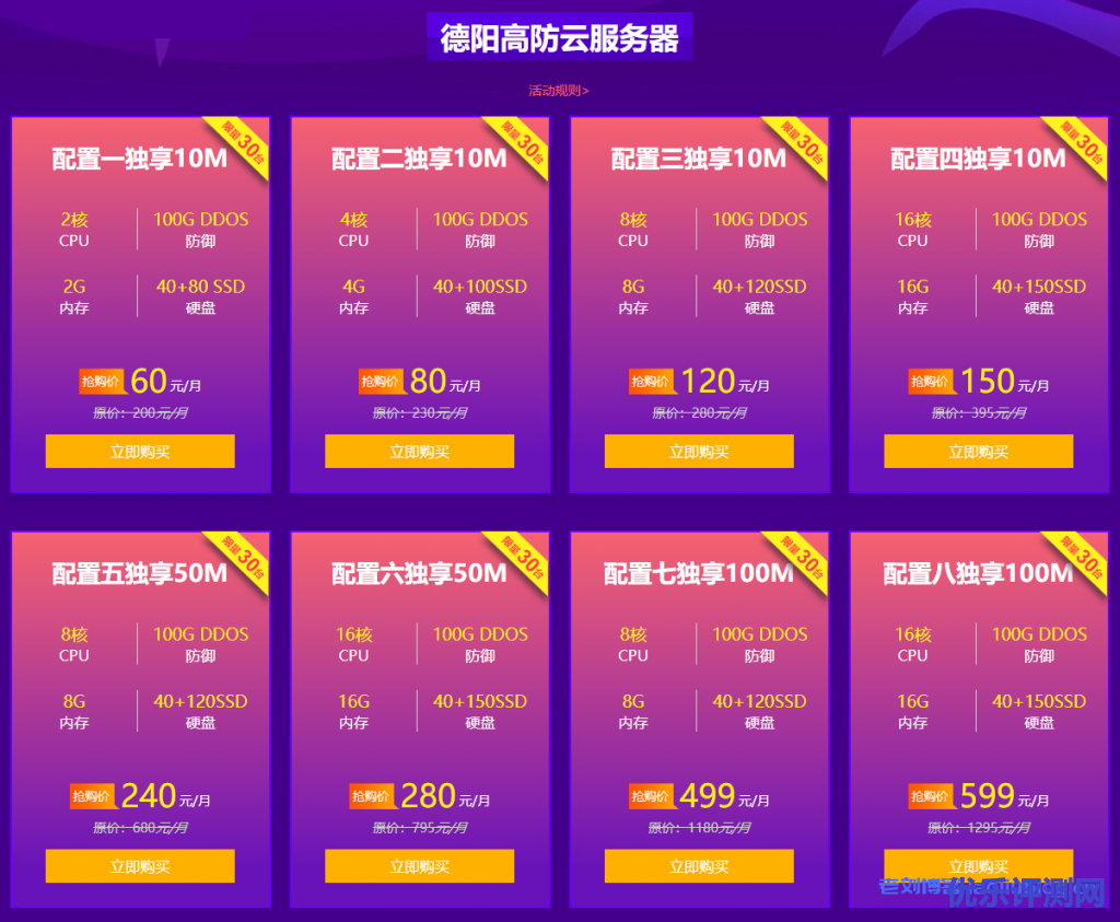 4、每用户限购三台高防活动服务器;