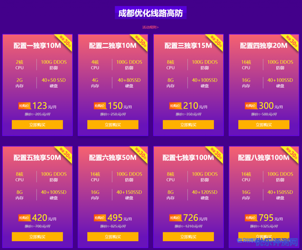 2、本次活动服务器配置带宽已写明可自行选择须要的配置,防御峰值为100G DDOS,可购买时长1,3,6,12;