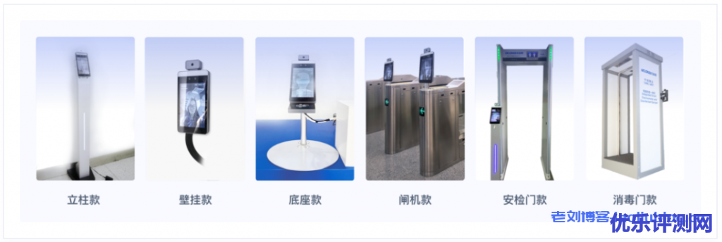 UCloud人脸测温门禁一体机具有丰富的产品形态,专为场景化服务。有立柱款、壁挂款、底座款、闸机款、安检门款和消毒门款。如下图所示: