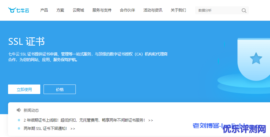 …更多推荐,你可以前期七牛云页面:https://www.qiniu.com/products/ssl#recommend,根据你的实际需求查到七牛云为你推荐的SSL证书,虽然SSL证书种类繁多,通过这个工具可以轻松查明。