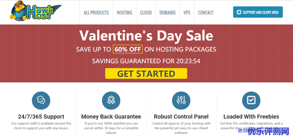 2021年情人节将至,老鹰主机hawkhost针对其云虚拟主机、专用虚拟主机、分销虚拟主机、云服务器推出最高终身4折的老鹰主机HawkHost情人节促销优惠活动:Valentine’s Day Sale,SAVE UP TO60% OFFON HOSTING PACKAGES。老鹰主机hawkhost明星云共享虚拟主机2年只需187元起,年均90元多一点。需要便宜建站用途、外贸建站或者建站入门的可以考虑用虚拟主机试试手。