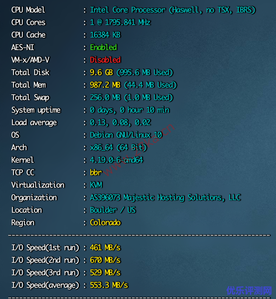 从拿到的VPS来看,硬盘I/O大致在/S的样子: