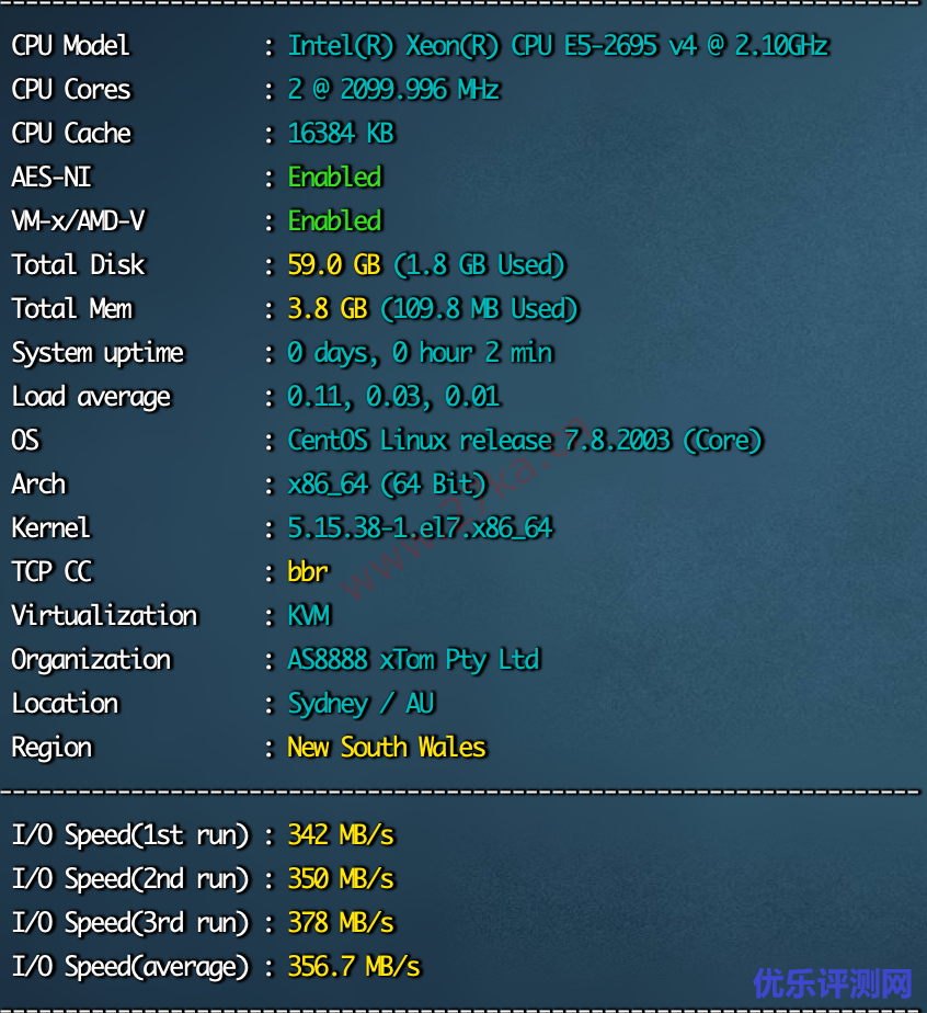 LOCVPS本月基于澳大利亚“澳洲悉尼#2”联通CU线路上线了100Mbps端口澳大利亚VPS主机,可使用8折优惠码,优惠后2GB内存套餐每月仅29.6元起。那么LOCVPS的“澳洲悉尼#2”澳大利亚VPS情况如何呢?云搜网主机测评给大家来做个简单的测评吧,大家自行看数据说话吧!