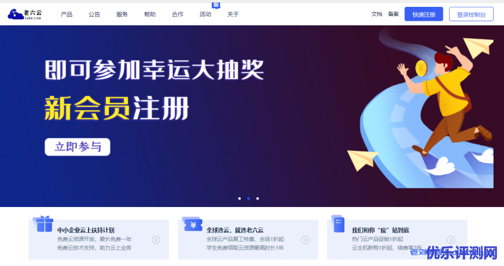 ⽼六云怎么样,⽼六云好不好,⽼六云成⽴于2020年3⽉,国⼈商家,已经运营⼀年有余,猛一看官网页面,很像UCloud的官网,可能老板是UCloud粉丝吧。⽼六云⽬前主营⾹港cn2、⾹港BGP 美国cn2与最近新上架的⾹港GT(⼤宽带)服务器。本次也主推⾹港GT服务器,新⽤户购买⾹港GT系列服务器,⾸⽉可享⼋五折优惠。有需要的,可以关注一下。