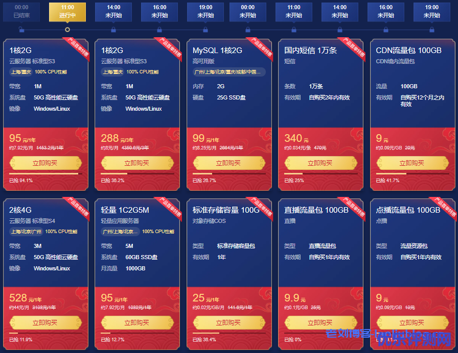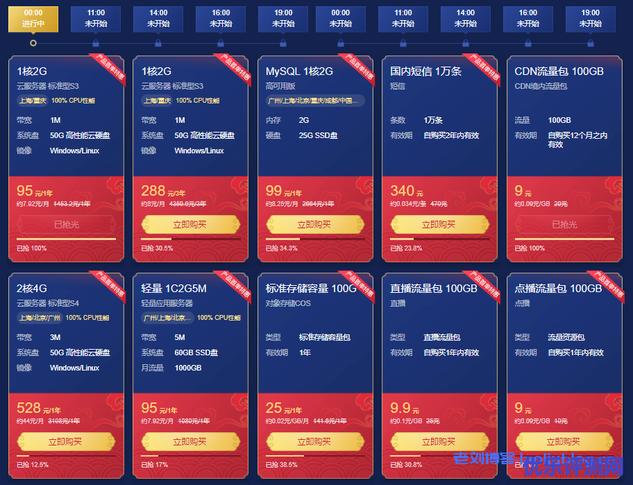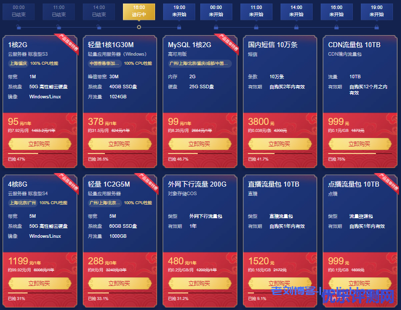 腾讯云于3月1日推出了2021新春采购节活动,其中主会场中爆品·秒杀专区活动最为亮眼:爆款1核2G云服务器首年95元,每日5场秒杀,限量抢购,本篇文章将为大家总结这5场秒杀活动的产品配置及价格详情。