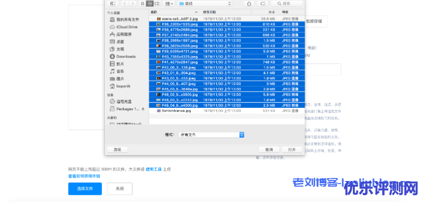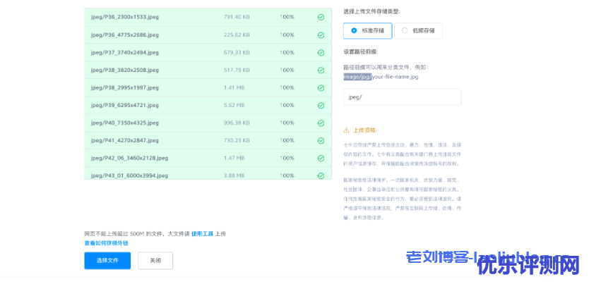2 点击 上传文件,开始上传。注意:网页上传的文件单个大小不得超过 500M,大文件请使用工具上传。