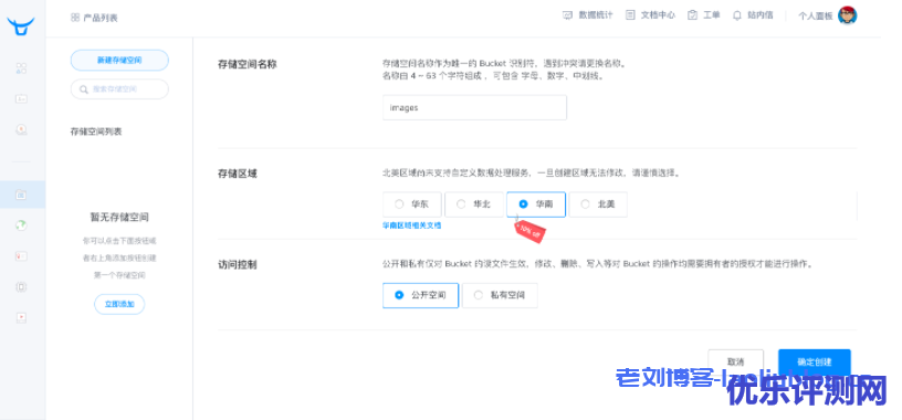 **注意:**如果您是体验用户,新建存储空间时,会遇到 “新建存储空间失败,请先实名认证”的提示信息。