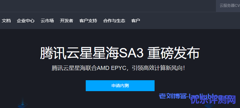 腾讯云星星海SA2云服务器,大家应该都知道,腾讯云一直做得促销活动基本都是围绕这款云服务器的,质量那是杠杠的,配得上良心云称号!和传统云服务器更是演进3-5年。现在,腾讯云星星海SA3重磅发布了,腾讯云星星海联合AMD EPYC,引领高效计算新风向!目前,腾讯云官网已开启腾讯云星星海SA3内存申请入口,老刘博客今天带大家具体了解下。