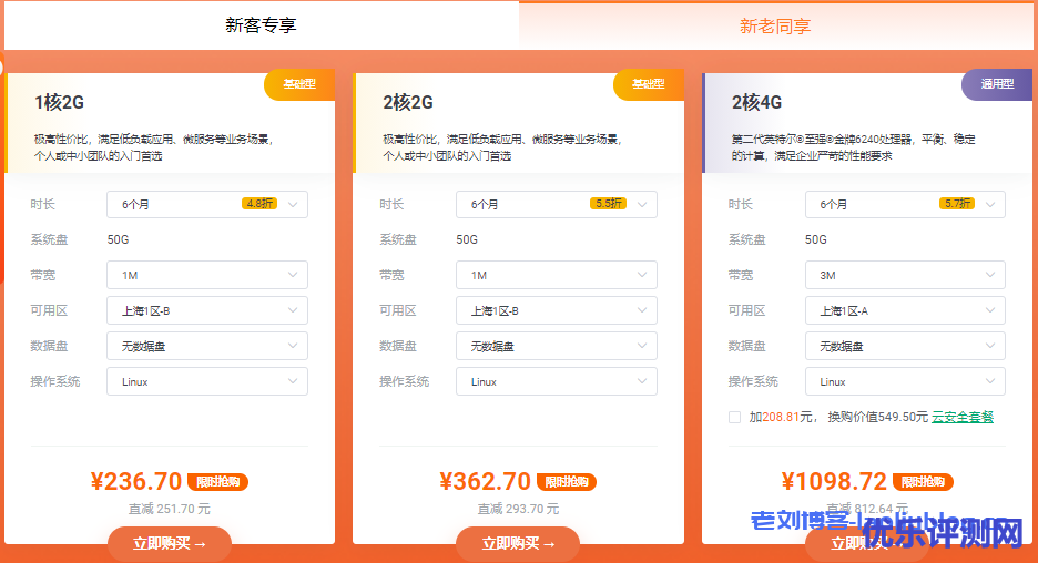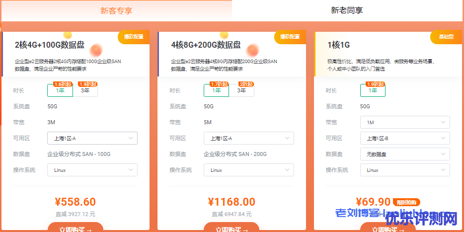 新用户:2核4G+100G数据盘,1年只要558.60元,3年1194.00元,还是挺香的!