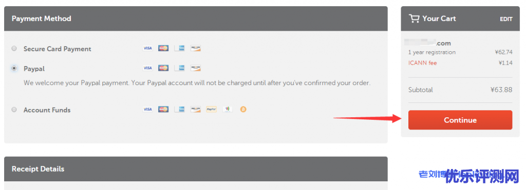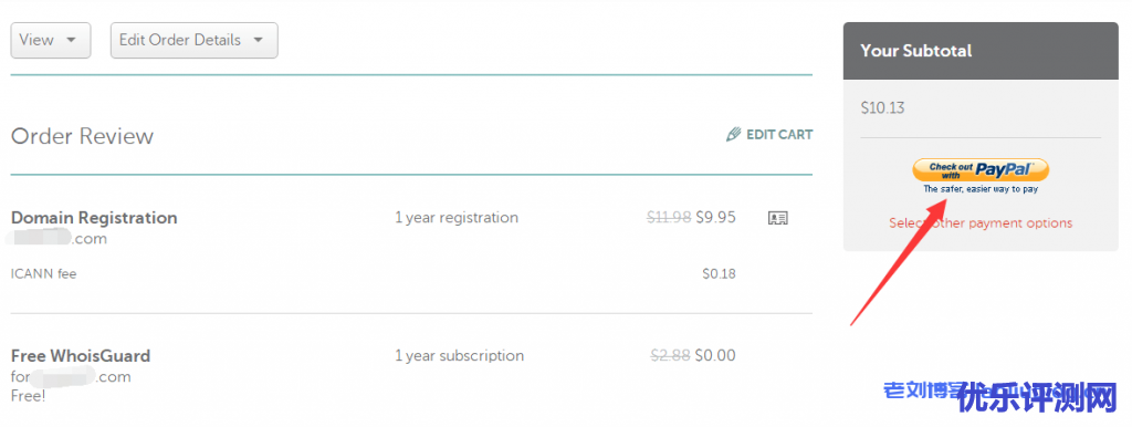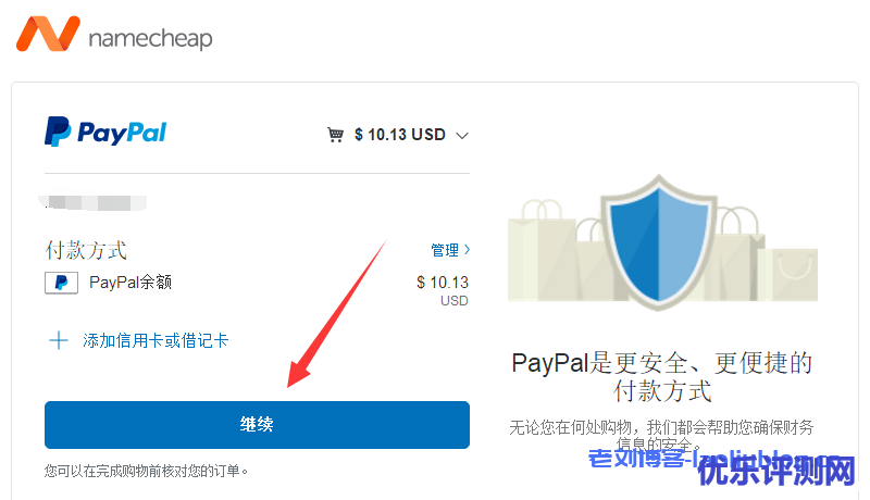 6,最后选择付款方式(双币信用卡或paypal),一灯选择的是paypal付款。
