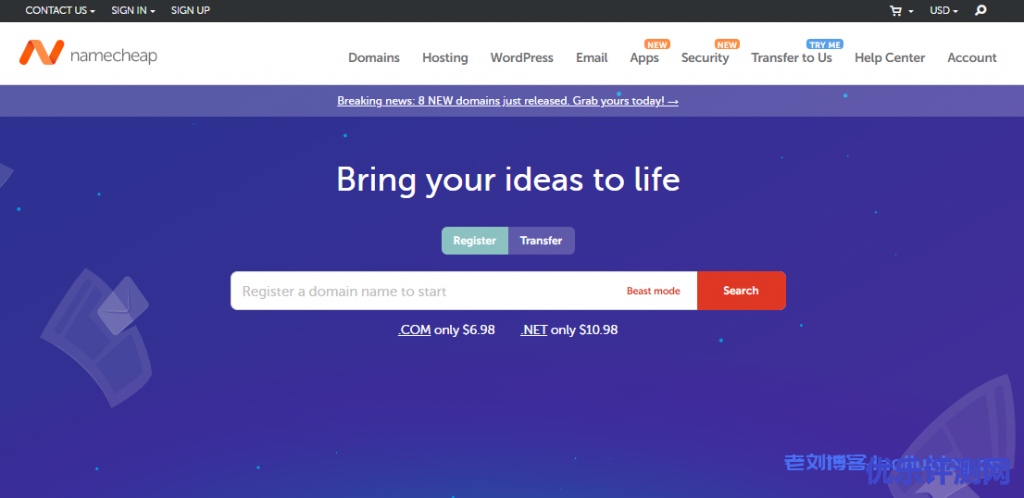 Namecheap怎么样?Namecheap好不好?Namecheap成立于2000年,是一家ICANN认证的国外顶级域名注册商。namecheap管理着近900多万个域名,过去10年销售额呈指数级增长,在各种投票活动中遥遥领先其它域名商,是目前为止综合实力最强、口碑最好的国外域名注册商。最受欢迎的.com域名首次注册$ 6.98 /年+$ 0.18ICANN费用,续费$ 8.88 /年,并且送终身的域名隐私保护Whois Guard。
