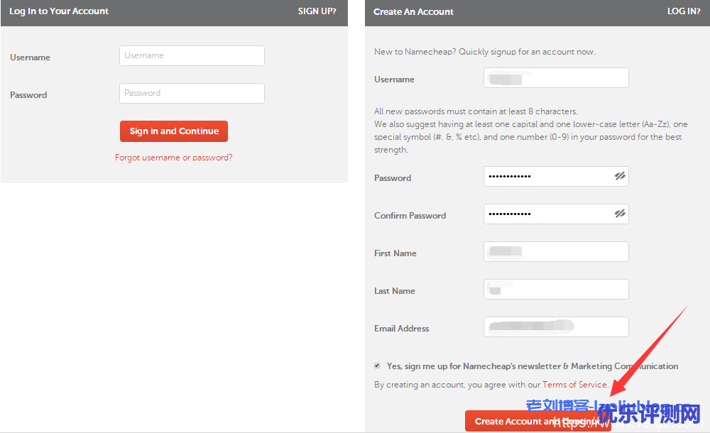 4,接下来会提示你注册namecheap账户,如实填写就行了。