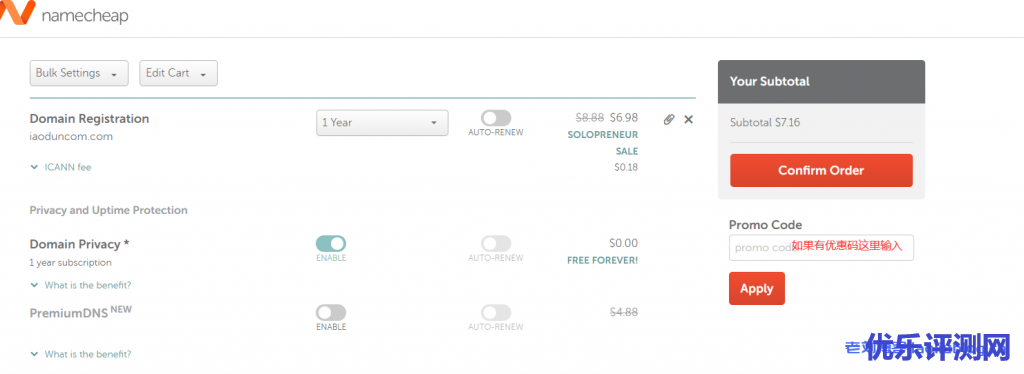3,输入优惠码COUPONFCNC(续费也可以使用),然后点击Confirm Order。