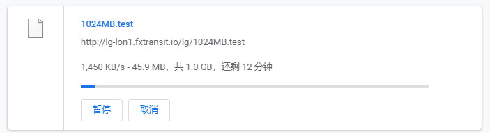 FxTransit速度测试:http://lg-lon1.fxtransit.io/lg/1024MB.test
