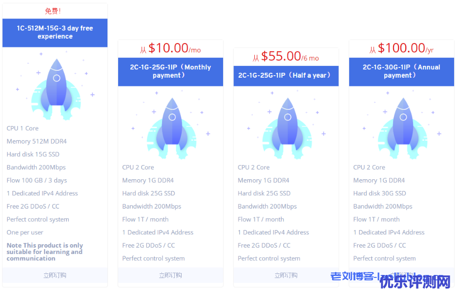 以下提供4款vps产品,分别是免费体验、月付、半年付、年付产品供大家选择: