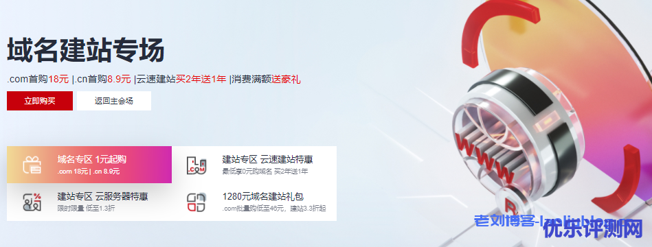 活动亮点:.com首购23元|.cn首购8.9元|云速建站买2年送1年