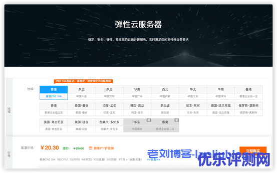 | 地区 | 核心 | 内存 | 宽带 | 活动价(月付) |