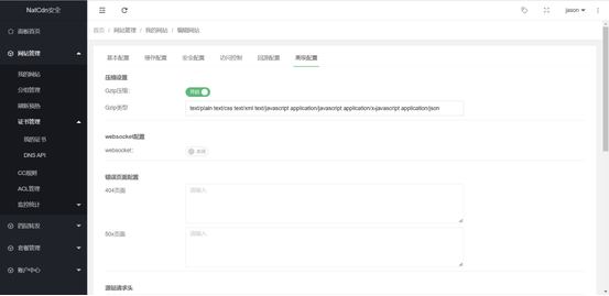 支持高级缓存、分层预热、动态加速、加速、加速、页面压缩、支持IPV6配置、智能压缩节省流量、支持一键申请免费证书