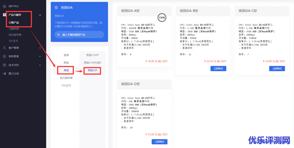 注册登录进入后台管理,选择订购产品–美国-美GIA,就可以看到上述列出的产品。