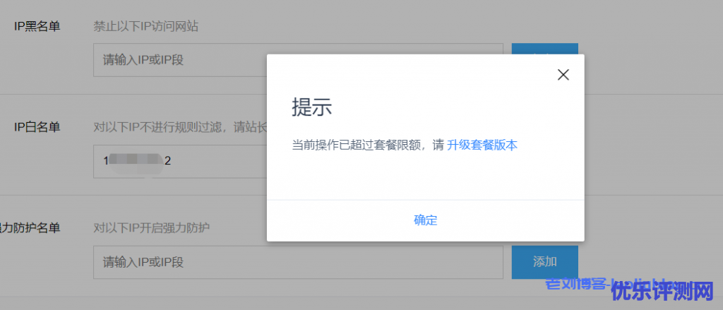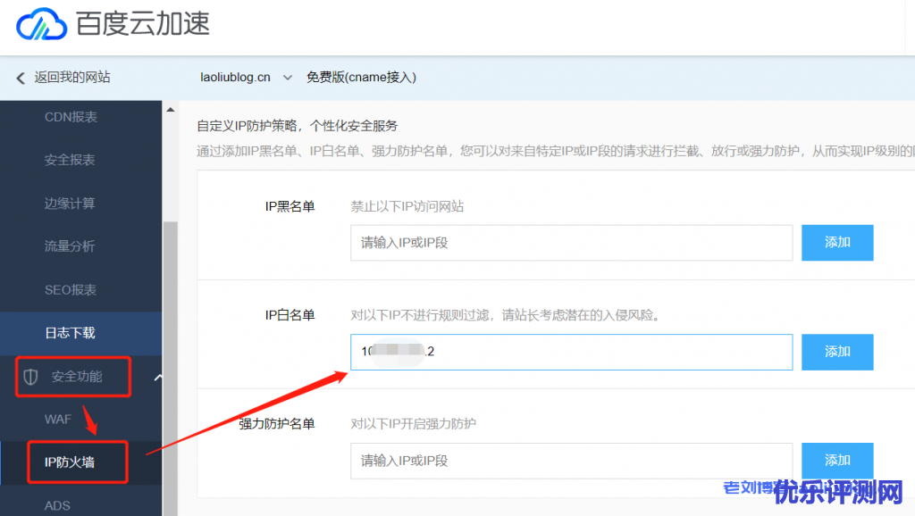 当然免费版百度云加速是不支持加IP白名单的,你可以去升级套餐: