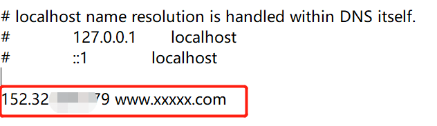 把文件复制出来,用记事本打开就行,再文件最后加上 IP 网站域名(这个IP是网站服务器公网IP),之后保持退出,如下: