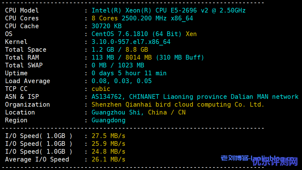 云服务器配置信息及IO性能测试