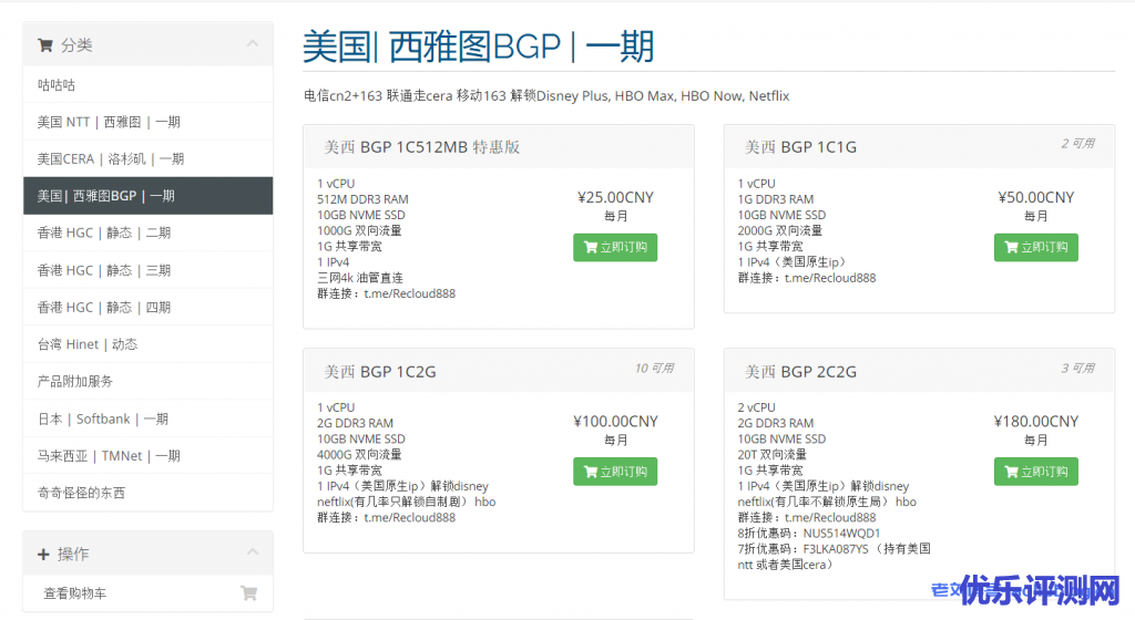 美国| 西雅图BGP | 一期:电信cn2+163 联通走cera 移动163 解锁Disney Plus, HBO Max, HBO Now, Netflix。