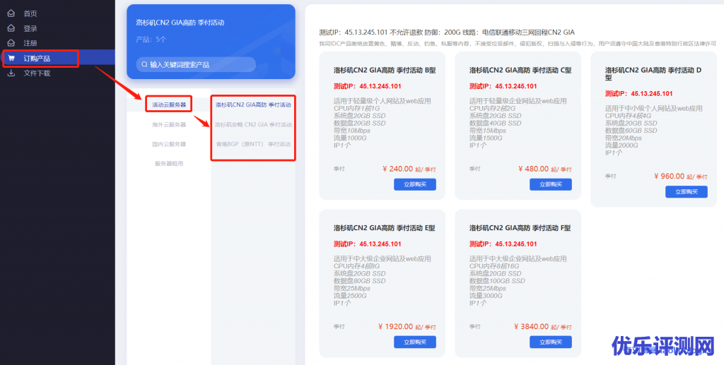 | 洛杉矶CN2 GIA高防 季付活动 | 洛杉矶安畅 CN2 GIA 季付活动 | 香港BGP(原NTT) 季付活动 | 镇江BGP高防 |