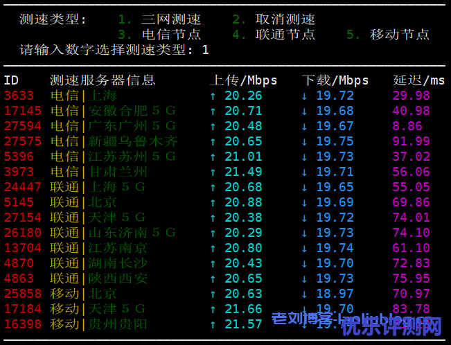 快云科技香港云新界CN2线路7区测试机国内三网测速,上传下载均能跑满20Mbps,延迟均在两位数。