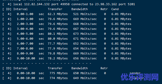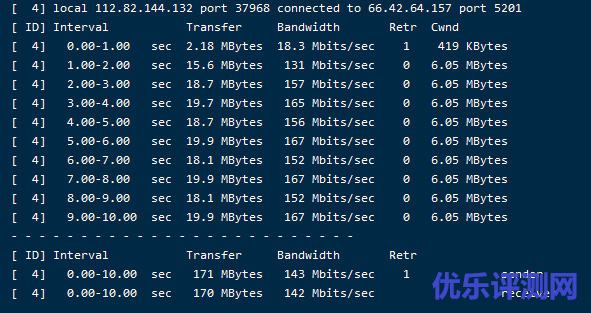 -> Traceroute Test (IPV4) Traceroute to China, Beijing CU (TCP Mode, Max 30 Hop) ============================================================ traceroute to 123.125.99.1 (123.125.99.1), 30 hops max, 32 byte packets 1 60.0.0.1 3.55 ms AS7545 China, Hebei, Shijiazhuang, ChinaUnicom 2 60.0.0.1 22.85 ms AS7545 China, Hebei, Shijiazhuang, ChinaUnicom 3 112.82.202.29 13.25 ms AS4837 China, Jiangsu, Changzhou, ChinaUnicom 4 122.192.80.153 2.93 ms AS4837 China, Jiangsu, Changzhou, ChinaUnicom 5 219.158.100.57 27.49 ms AS4837 China, ChinaUnicom 6 219.158.100.57 25.14 ms AS4837 China, ChinaUnicom 7 61.149.203.186 23.23 ms AS4808 China, Beijing, ChinaUnicom 8 124.65.194.50 23.31 ms AS4808 China, Beijing, ChinaUnicom 9 61.135.113.158 27.50 ms AS4808 China, Beijing, ChinaUnicom 10 61.135.113.154 25.34 ms AS4808 China, Beijing, ChinaUnicom 11 * 12 123.125.99.1 26.93 ms AS4808 China, Beijing, ChinaUnicom Traceroute to China, Beijing CT (TCP Mode, Max 30 Hop) ============================================================ traceroute to 180.149.128.9 (180.149.128.9), 30 hops max, 32 byte packets 1 60.0.0.1 3.61 ms AS7545 China, Hebei, Shijiazhuang, ChinaUnicom 2 60.0.0.1 8.11 ms AS7545 China, Hebei, Shijiazhuang, ChinaUnicom 3 112.82.202.221 2.78 ms AS4837 China, Jiangsu, Changzhou, ChinaUnicom 4 112.82.249.33 7.77 ms AS4837 China, Jiangsu, Changzhou, ChinaUnicom 5 219.158.13.5 27.24 ms AS4837 China, ChinaUnicom 6 219.158.4.154 30.41 ms AS4837 China, ChinaUnicom 7 * 8 202.97.17.125 25.07 ms AS4134 China, ChinaTelecom 9 * 10 36.110.248.254 29.37 ms AS23724 China, Beijing, ChinaTelecom 11 180.149.128.9 30.05 ms AS23724 China, Beijing, ChinaTelecom Traceroute to China, Beijing CM (TCP Mode, Max 30 Hop) ============================================================ traceroute to 211.136.25.153 (211.136.25.153), 30 hops max, 32 byte packets 1 60.0.0.1 3.61 ms AS7545 China, Hebei, Shijiazhuang, ChinaUnicom 2 60.0.0.1 20.50 ms AS7545 China, Hebei, Shijiazhuang, ChinaUnicom 3 58.241.65.201 2.77 ms AS4837 China, Jiangsu, Changzhou, ChinaUnicom 4 112.82.249.57 8.66 ms AS4837 China, Jiangsu, Changzhou, ChinaUnicom 5 219.158.4.81 31.04 ms AS4837 China, ChinaUnicom 6 219.158.3.66 27.64 ms AS4837 China, ChinaUnicom 7 219.158.42.218 25.33 ms AS4837 China, ChinaUnicom 8 221.183.25.53 23.07 ms AS9808 China, ChinaMobile 9 111.24.2.101 28.44 ms AS9808 China, ChinaMobile 10 111.24.14.54 37.41 ms AS9808 China, ChinaMobile 11 * 12 * 13 211.136.95.226 57.53 ms AS56048 China, Beijing, ChinaMobile 14 211.136.95.226 30.22 ms AS56048 China, Beijing, ChinaMobile 15 * 16 * 17 211.136.25.153 26.22 ms AS56048 China, Beijing, ChinaMobile Traceroute to China, Shanghai CU (TCP Mode, Max 30 Hop) ============================================================ traceroute to 58.247.8.158 (58.247.8.158), 30 hops max, 32 byte packets 1 60.0.0.1 4.10 ms AS7545 China, Hebei, Shijiazhuang, ChinaUnicom 2 60.0.0.1 6.19 ms AS7545 China, Hebei, Shijiazhuang, ChinaUnicom 3 112.82.202.13 3.60 ms AS4837 China, Jiangsu, Changzhou, ChinaUnicom 4 122.192.80.154 2.93 ms AS4837 China, Jiangsu, Changzhou, ChinaUnicom 5 112.82.249.37 6.96 ms AS4837 China, Jiangsu, Changzhou, ChinaUnicom 6 139.226.210.94 9.65 ms AS17621 China, Shanghai, ChinaUnicom 7 139.226.228.46 9.72 ms AS17621 China, Shanghai, ChinaUnicom 8 139.226.225.22 6.51 ms AS17621 China, Shanghai, ChinaUnicom 9 139.226.225.22 6.59 ms AS17621 China, Shanghai, ChinaUnicom 10 * 11 * 12 * 13 * 14 * 15 * 16 * 17 * 18 * 19 * 20 * 21 * 22 * 23 * 24 * 25 * 26 * 27 * 28 * 29 * 30 * Traceroute to China, Shanghai CT (TCP Mode, Max 30 Hop) ============================================================ traceroute to 180.153.28.5 (180.153.28.5), 30 hops max, 32 byte packets 1 60.0.0.1 15.46 ms AS7545 China, Hebei, Shijiazhuang, ChinaUnicom 2 60.0.0.1 3.62 ms AS7545 China, Hebei, Shijiazhuang, ChinaUnicom 3 112.82.202.233 2.76 ms AS4837 China, Jiangsu, Changzhou, ChinaUnicom 4 122.192.80.5 3.57 ms AS4837 China, Jiangsu, Changzhou, ChinaUnicom 5 219.158.18.1 12.96 ms AS4837 China, ChinaUnicom 6 219.158.6.222 12.87 ms AS4837 China, ChinaUnicom 7 202.97.17.201 12.21 ms AS4134 China, ChinaTelecom 8 202.97.87.149 12.20 ms AS4134 China, ChinaTelecom 9 101.95.88.85 10.89 ms AS4812 China, Shanghai, ChinaTelecom 10 101.95.207.2 14.39 ms AS4812 China, Shanghai, ChinaTelecom 11 124.74.232.242 13.27 ms AS4811 China, Shanghai, ChinaTelecom 12 101.227.255.34 15.00 ms AS4812 China, Shanghai, ChinaTelecom 13 180.153.28.5 11.22 ms AS4812 China, Shanghai, ChinaTelecom Traceroute to China, Shanghai CM (TCP Mode, Max 30 Hop) ============================================================ traceroute to 221.183.55.22 (221.183.55.22), 30 hops max, 32 byte packets 1 60.0.0.1 3.48 ms AS7545 China, Hebei, Shijiazhuang, ChinaUnicom 2 60.0.0.1 13.12 ms AS7545 China, Hebei, Shijiazhuang, ChinaUnicom 3 112.82.202.17 2.88 ms AS4837 China, Jiangsu, Changzhou, ChinaUnicom 4 112.82.249.57 8.99 ms AS4837 China, Jiangsu, Changzhou, ChinaUnicom 5 219.158.104.97 5.70 ms AS4837 China, ChinaUnicom 6 219.158.113.198 12.65 ms AS4837 China, ChinaUnicom 7 219.158.44.58 9.53 ms AS4837 China, ChinaUnicom 8 221.183.86.114 13.49 ms AS9808 China, ChinaMobile 9 * 10 221.176.17.178 17.87 ms AS9808 China, ChinaMobile 11 221.183.55.22 19.78 ms AS9808 China, ChinaMobile Traceroute to China, Guangzhou CU (TCP Mode, Max 30 Hop) ============================================================ traceroute to 210.21.4.130 (210.21.4.130), 30 hops max, 32 byte packets 1 60.0.0.1 4.23 ms AS7545 China, Hebei, Shijiazhuang, ChinaUnicom 2 60.0.0.1 3.60 ms AS7545 China, Hebei, Shijiazhuang, ChinaUnicom 3 112.82.202.209 2.92 ms AS4837 China, Jiangsu, Changzhou, ChinaUnicom 4 122.192.80.113 2.71 ms AS4837 China, Jiangsu, Changzhou, ChinaUnicom 5 219.158.114.213 32.63 ms AS4837 China, ChinaUnicom 6 219.158.114.213 30.30 ms AS4837 China, ChinaUnicom 7 120.80.79.194 26.60 ms AS17622 China, Guangdong, Guangzhou, ChinaUnicom 8 * 9 * 10 * 11 * 12 * 13 * 14 * 15 * 16 * 17 * 18 * 19 * 20 * 21 * 22 * 23 * 24 