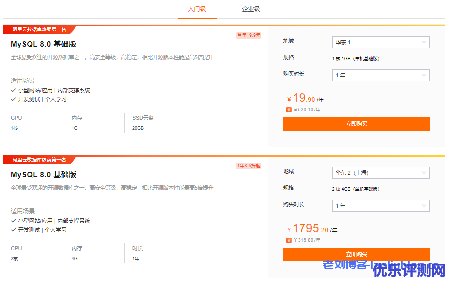 云数据库活动专场,新用户1折起,爆款5-8折,MySQL 1年仅需19.9元。点击查看