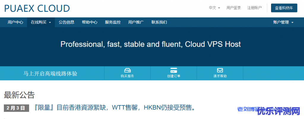 PUAEX CLOUD怎么样?PUAEX CLOUD好不好?PUAEX CLOUD是中港成立已超过半年的新商家,目前香港/VPS/VDS已正式上線。PUAEX CLOUD香港精品專線,獨享帶寬,快速穩定流暢,現貨1臺:香港商寬WTT 1Gbps月付折85,季付折82,24小時內開通,相關優惠碼產品詳情頁可見,有需要的可以关注一下。