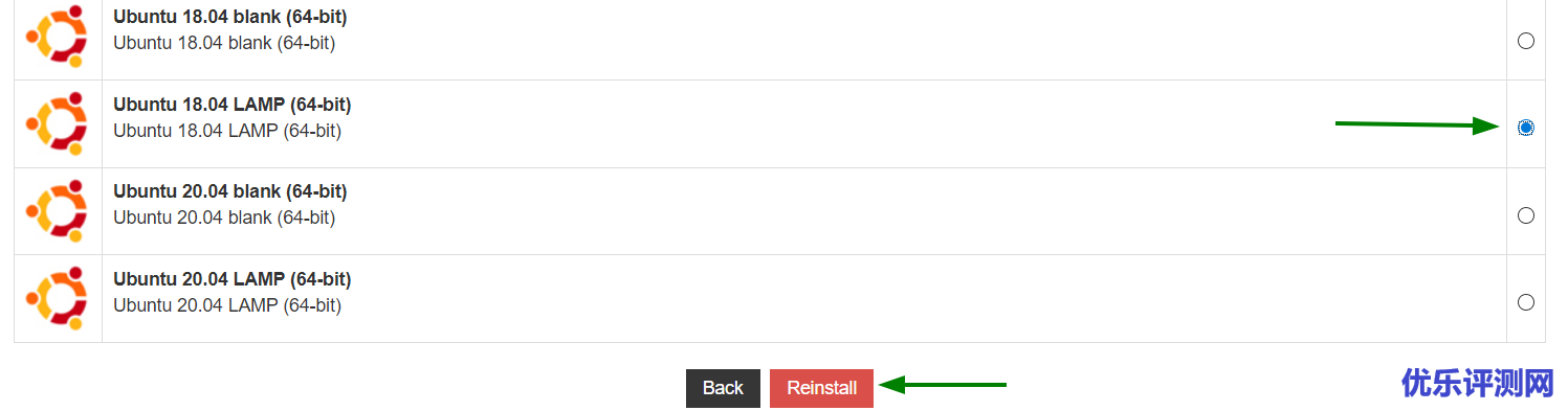 在下一页上,您将看到可用操作系统的列表。您可以在VPS上安装下一个操作系统: