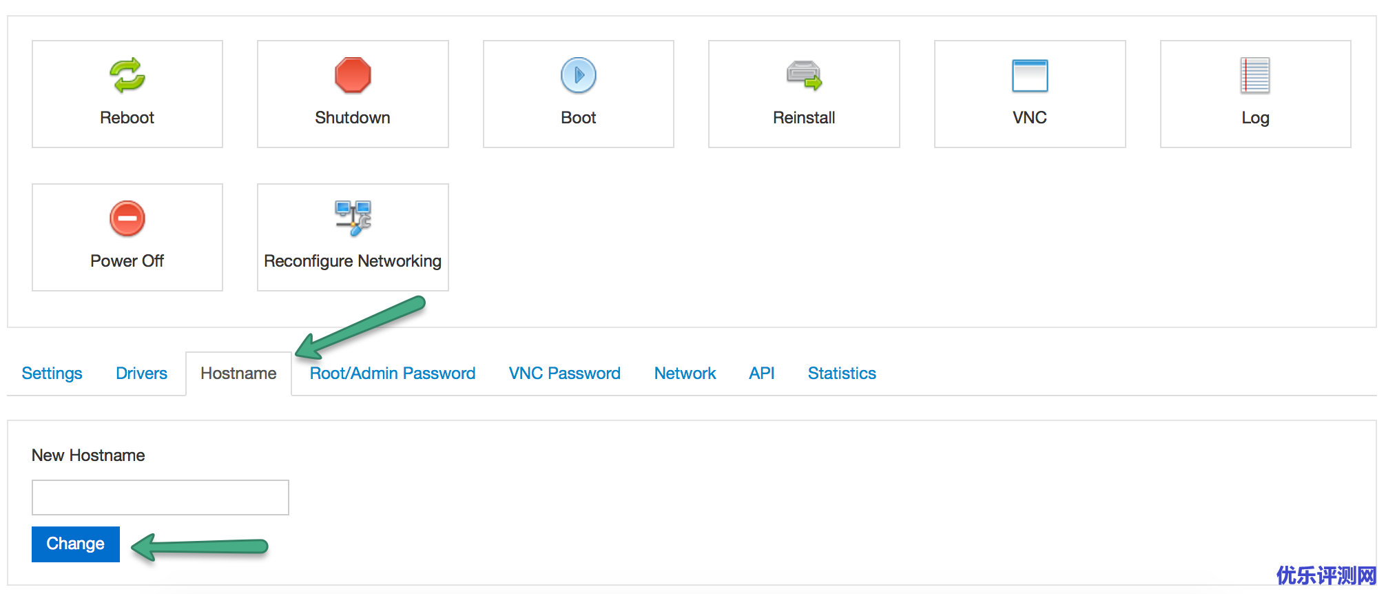 - 在“新主机名”字段中,输入您选择的新服务器主机名,然后单击“更改”。