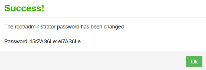 等待几分钟,以重置密码。一旦完成,您将收到一条带有新密码的“成功”消息: